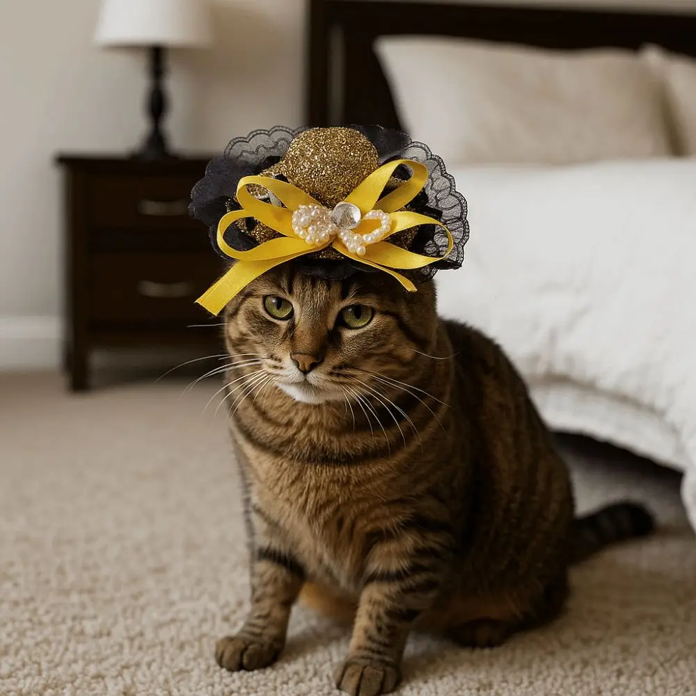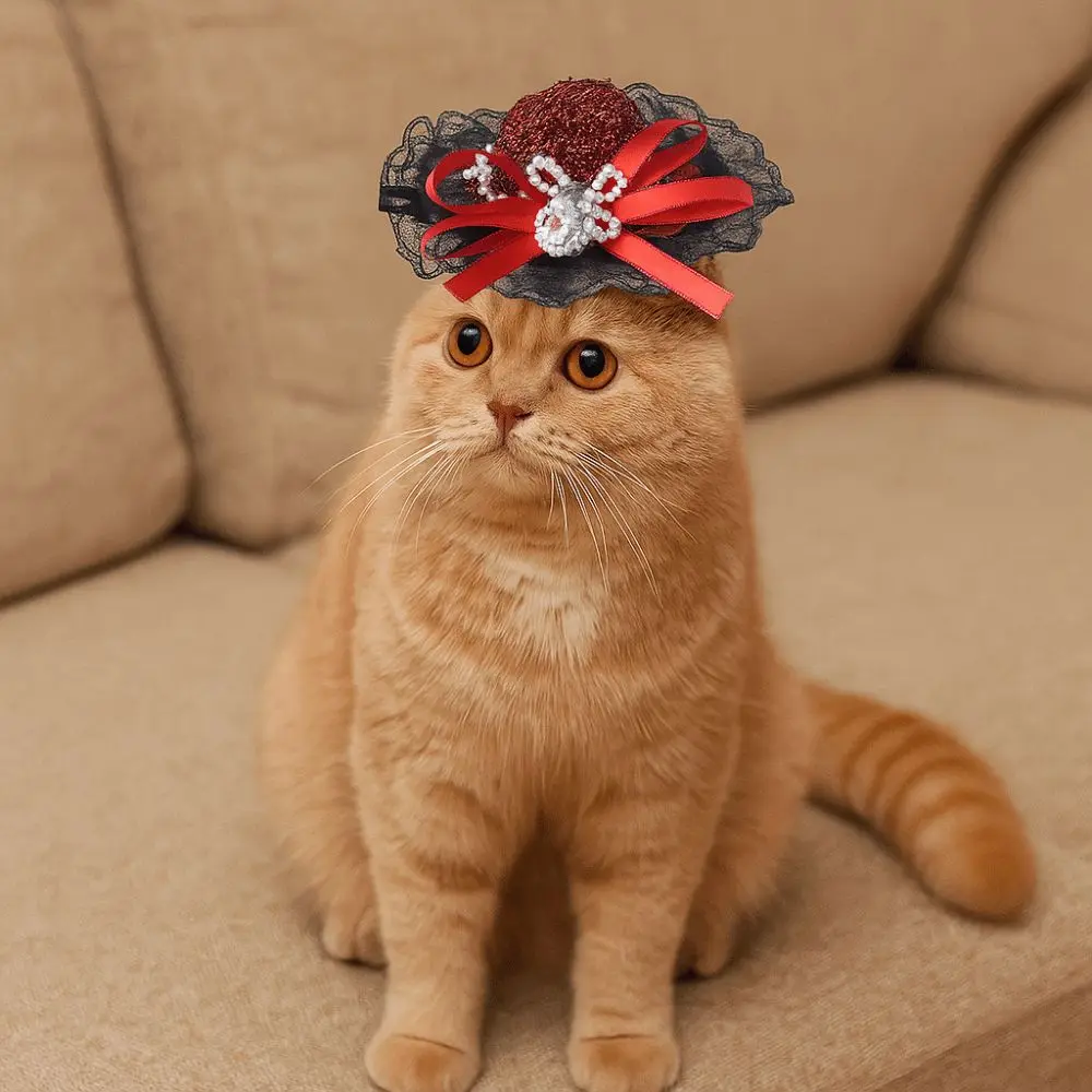 Pet Accessories Adjustable Pet Halloween Hat British Style Elastic Band Cat Cosplay Hat Sequin Pet Decorative Hat Pet Party